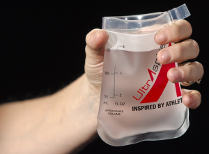 Een nieuwe oplossing is de opvouwbare drinkbeker die luistert naar de naam UA Cup 6 oz. Deze kan je eenvoudig aan een clip bevestigen. Bij de waterpunten staan mensen met gieters klaar om je beker te vullen (zie ik dan voor me). Je verliest misschien 4 seconden aan tijd, maar de meeste deelnemers hebben toch niet de illusie te winnen, behalve dan van zichzelf. Met het tijdverlies bewijs je het milieu wel een dienst.