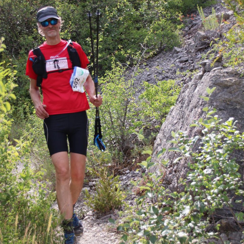 Gaandeweg bleken de stokken steeds meer mijn steun en toeverlaat. Het was goed om bezig te zijn om een vierpotig ritme te zoeken, in plaats van alleen maar het ene been voor het andere te zetten. Hoewel ik hier ook op het parcours van de 21 km liep, werd het steeds meer een solo-avontuur. Heel af en toe werd ik nog ingehaald of haalde ik in.