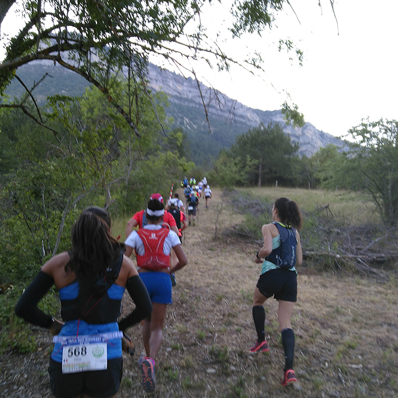 Ik was een week voor ons vertrek op zoek naar een trailevenement in de buurt van ons vakantielocatie (Vercheny, Drôme, Frankrijk). Ik vond een evenement: de Ultra Tour de la Motte Chalancon met verschillende afstanden: 86, 42, 21, 20, 13 en 12 kilometer. Ik heb de 42 kilometer uitgekozen met 2,4 kilometer klimmen. De naam van deze afstand en dit parcours is Trail des Aiguilles, genoemd naar één van de te beklimmen pieken. Ik zag dat de sluitingstijden van de doorkomstposten nogal ruim was, dus ik kon rustig aan doen door de eenvoudige wetmatigheid: Hoe langer je er over mag doen, hoe meer kilometers je kunt afleggen.